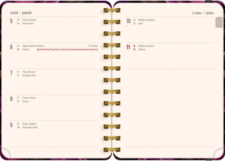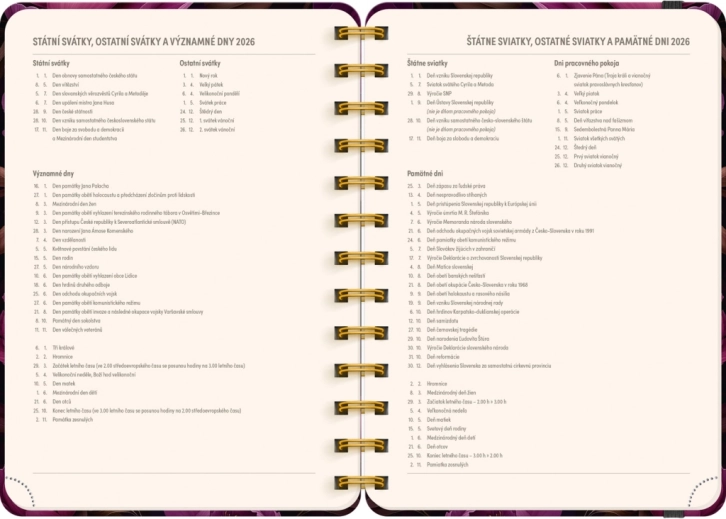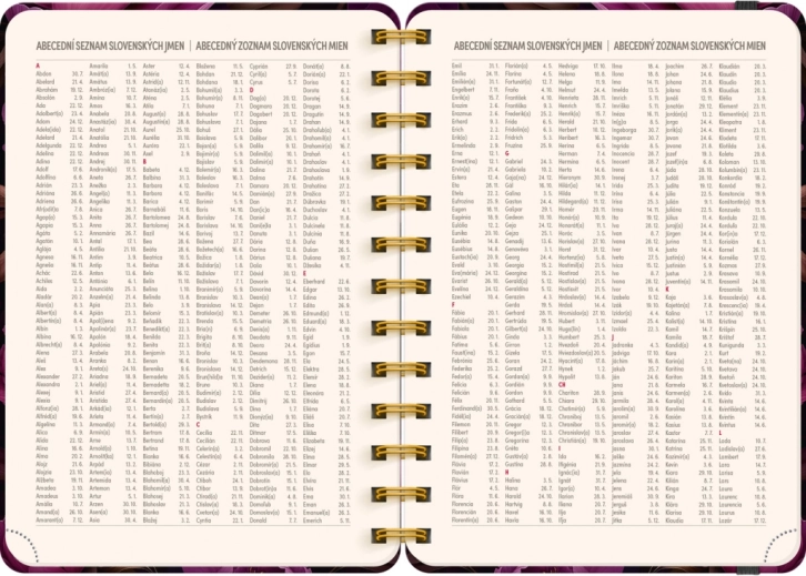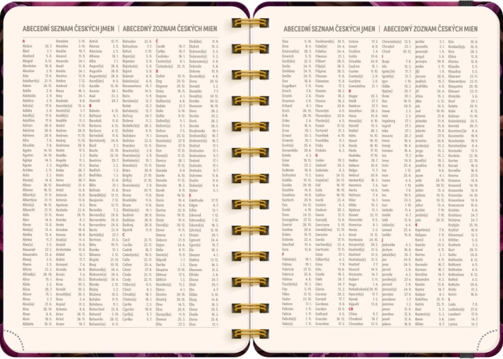 - Zawiera listę czeskich i słowackich imion wraz z nazwami świąt.