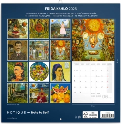 Kalendarz zawiera unikalne obrazy ikonicznej malarki Fridy Kahlo. Skorzystaj z przejrzystego kalendarium od września 2025 do grudnia 2026 w sześciu językach, aby lepiej planować.
