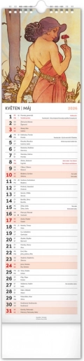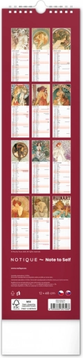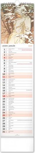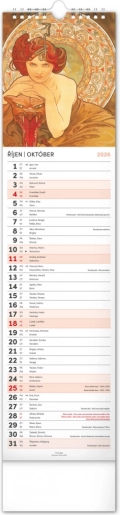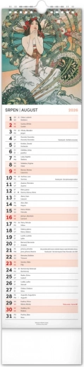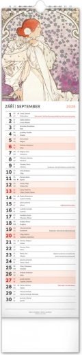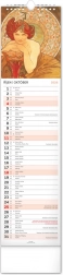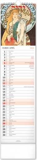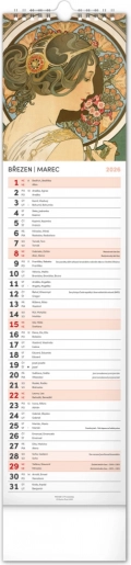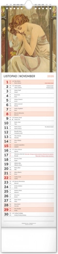 Odkryj piękno sztuki secesyjnej z kalendarzem ściennym Alfons Mucha 2026. Delektuj się co miesiąc wyjątkową reprodukcją ikonicznych dzieł słynnego czeskiego artysty.