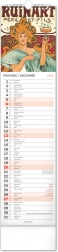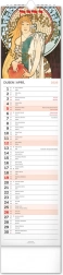 - Unikatowych reprodukcji – każda strona kalendarza zachwyca dopracowanymi w detalach pracami Alfonsa Muchy.