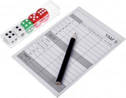 Ten uniwersalny zestaw zawiera wszystko, czego potrzebujesz do gry w Yams oraz inne gry losowe i towarzyskie. Kości z wyraźnymi oczkami, dołączony blok do zapisywania wyników oraz ołówek pozwolą grać zawsze i wszędzie. Dzięki solidnemu etui akcesoria masz zawsze w jednym miejscu.