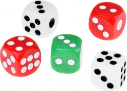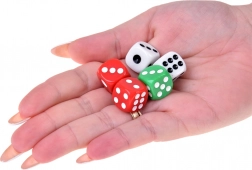 Kości z kontrastowymi oczkami i zaokrąglonymi krawędziami dla przyjemnego rzucania i łatwego odczytu wyników.