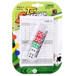 Pięć klasycznych sześciennych kości, blok do punktacji, ołówek i wytrzymałe etui – gotowe do gry w mgnieniu oka.