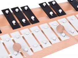 - Wytłoczone oznaczenia dźwięków na płytkach ułatwiają grę, szczególnie początkującym.