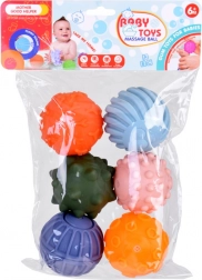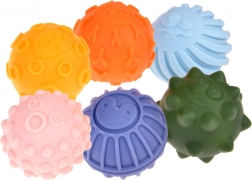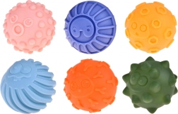 Każda z sześciu piłeczek ma inny kształt i strukturę oraz różne wypustki stymulują zmysły dotyku i wspierają rozwój receptorów sensorycznych. Pomaga to w rozwoju koordynacji i umiejętności dotykowych dzieci.