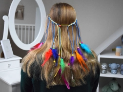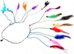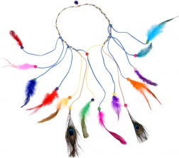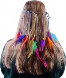 Podaruj swojemu stylowi barwny upgrade dzięki tej pięknej boho opasce do włosów. Jest wykonana z lekkich, kolorowych piór w intensywnych odcieniach – od turkusowego i żółtego po czerwony i zielony. Połączenie z drobnymi, drewnianymi koralikami oraz cienkimi warkoczykami tworzy efektowny i naturalny wygląd.