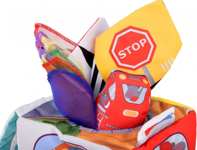 Odkryj fascynujący świat zabawy z Miękką kostką sensoryczną! Ta interaktywna zabawka nieustannie przyciąga i angażuje dziecko, stając się jego wiernym towarzyszem na różnych etapach rozwoju. Więcej niż zwykła kostka – to narzędzie, które dosłownie rośnie wraz z Twoim dzieckiem. Bogactwo kolorów, różnorodność kształtów i ukryte niespodzianki nieustannie przyciągają uwagę i zachęcają do odkrywania. Dziecko poznaje nowe faktury, wyciąga kolorowe chusteczki, kuleczki i odkrywa fascynujący świat pojazdów oraz znaków drogowych.