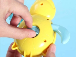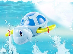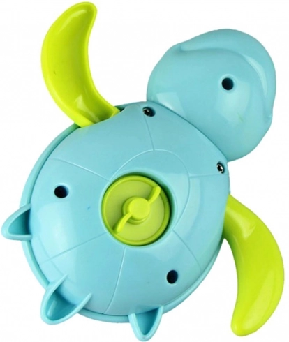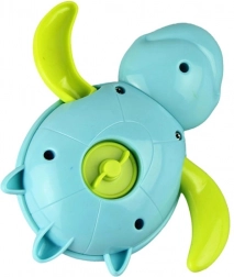 Nakręcany mechanizm aktywujesz łatwo — wystarczy obrócić płetwy żółwika, a on zacznie pływać.
