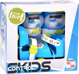 Przedstawiamy świetny zestaw dla małych rolkarzy, który obejmuje regulowane rolki i ochraniacze na kolana i łokcie. Rolki zakłada się bezpośrednio na buty, co jest idealnym rozwiązaniem dla dzieci, które uczą się jeździć, zapewniając stabilność i bezpieczeństwo.