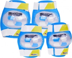 Zestaw zawiera ochraniacze łokci i kolan, które zapewniają potrzebną ochronę podczas upadków i są wykonane z miękkich, ale trwałych materiałów.