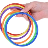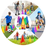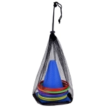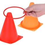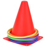 Ten zestaw zawiera kręgle i obręcze w żywych kolorach, które przyciągają uwagę i zapewniają zabawę podczas gry. Świetne do oznaczania boisk lub postojów.