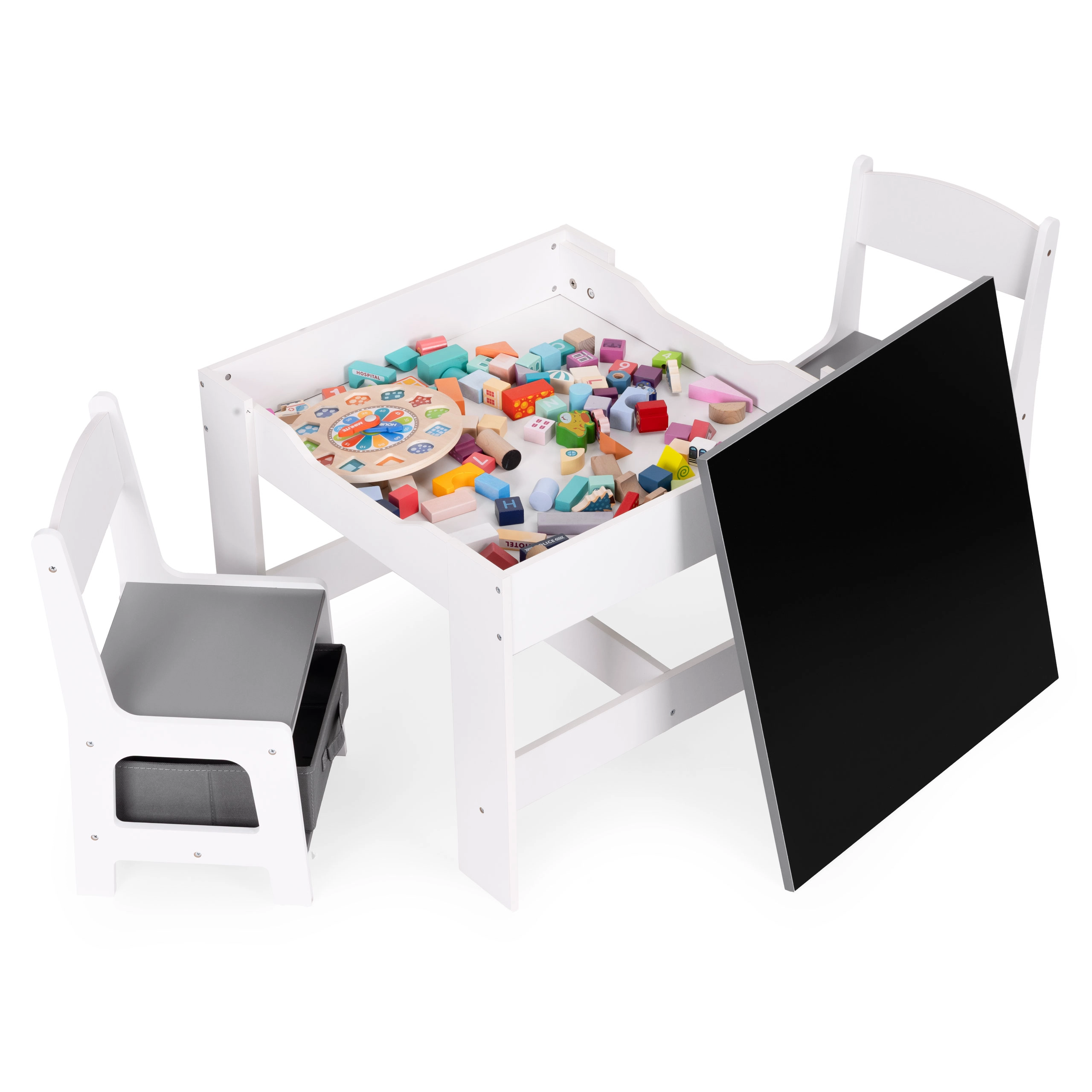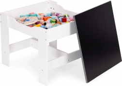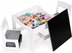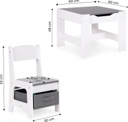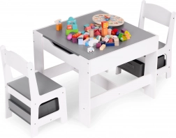 Zestaw mebli dziecięcych ECOTOYS jest idealny do zabawy i odpoczynku. Zawiera 2 krzesła i stół z wytrzymałą konstrukcją z MDF. Stół wyposażony jest w dwustronny, zdejmowany blat z tablicą kredową, który służy zarówno do zabawy, jak i nauki, pomagając rozwijać motorykę małą i kreatywność.