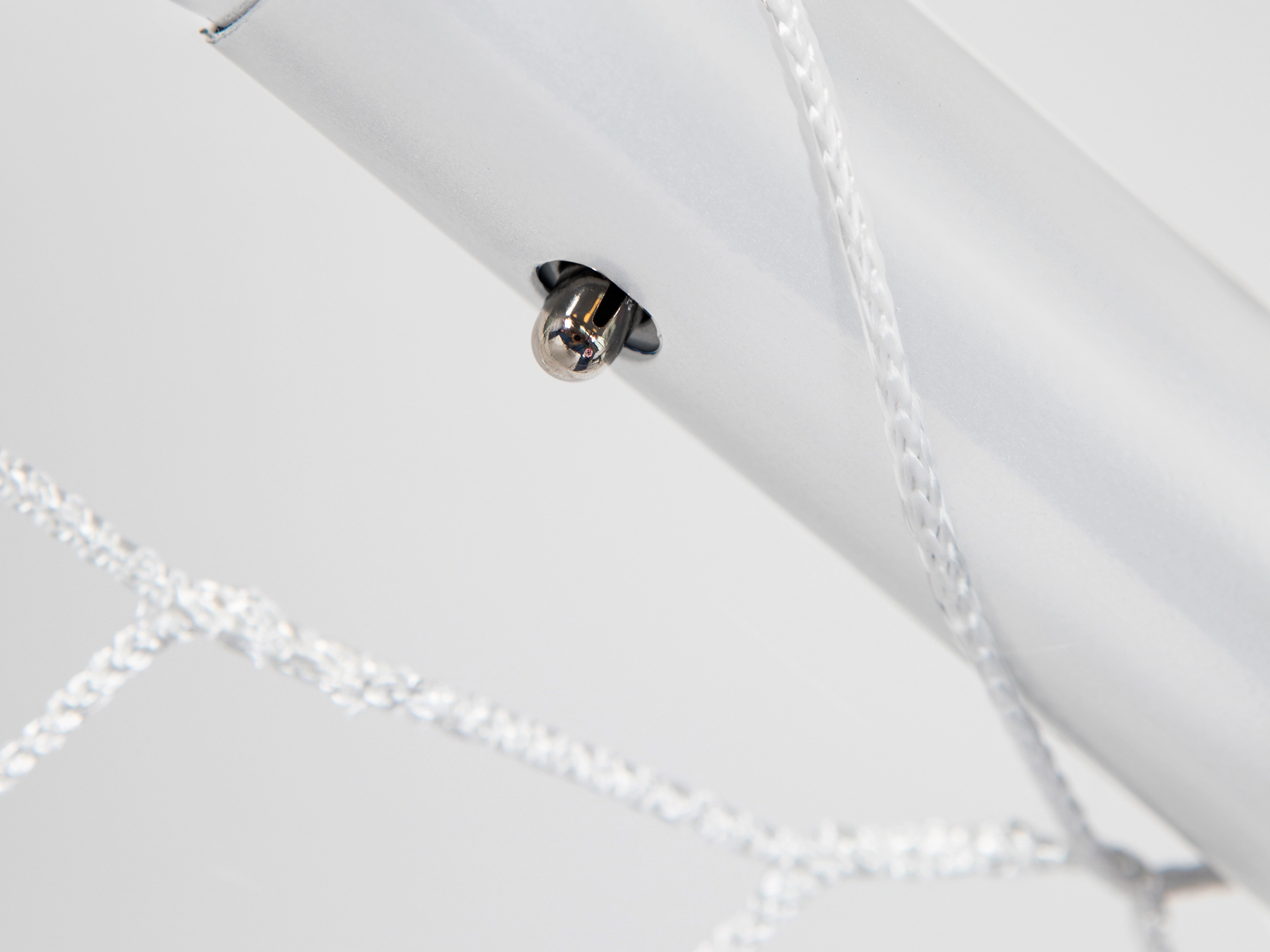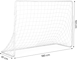 Po zdjęciu plandeki bramka ma standardowe wymiary do meczów piłkarskich. Stabilna stalowa rama jest kotwiona do podłoża za pomocą śledzi, co gwarantuje stabilność nawet przy mocnych strzałach. Poczuj się jak Szczęsny przy każdym ataku!