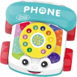 Telefon jest wyposażony w obracającą się tarczę, kolorowe elementy i uśmiechniętą buźkę, co zachęca dziecko do interakcji oraz odkrywania świata dźwięków, kształtów i ruchu. Ruchome części, takie jak tarcza czy kółka, pobudzają ciekawość dziecka i zachęcają do aktywnego poznawania.