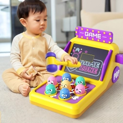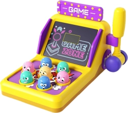 Zabawka Whack-a-Mole to popularna gra zręcznościowa w nowoczesnym automacie, która przyciąga dzieci swoim interaktywnym designem. Dzieci mają za zadanie uderzać młotkiem w kolorowe głowy wychodzące z otworów, co ćwiczy ich refleksy i umiejętności motoryczne. Duża, efektowna szafka w stylu retro automatów przyciąga dzieci wizualnymi elementami i szczegółami.