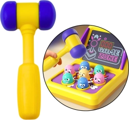Automat wyposażony jest w cyfrowy wyświetlacz do śledzenia wyników podczas gry, co dodaje element rywalizacji i motywuje dzieci do lepszych osiągnięć. Gra jest zasilana z baterii, co umożliwia uruchomienie wesołych efektów świetlnych i dźwiękowych, które zwiększają zaangażowanie i różnorodność zabawy. W zestawie znajduje się bezpieczny, lekki młotek idealnie dopasowany do dziecięcych rąk, aby gra była nie tylko ekscytująca, ale i całkowicie bezpieczna.