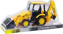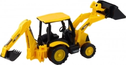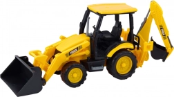 Model wyposażony jest w napęd typu pull-back, który po naciągnięciu i puszczeniu pojazdu wprawia maszynę w ruch – to świetna forma aktywnej zabawy rozwijająca koordynację wzrokowo‑ruchową oraz wyobraźnię przestrzenną. Dodatkowo koparka ma ruchome ramię z przodu i łyżkę z tyłu, co pozwala na symulację prawdziwych prac ziemnych. Ruchome elementy można ustawiać w różnych pozycjach, co uatrakcyjnia zabawę i pomaga dziecku lepiej zrozumieć mechanikę maszyn.