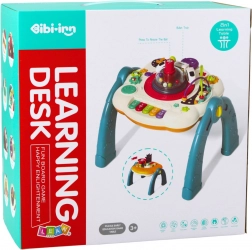 Po jednej stronie stolika znajduje się interaktywny panel edukacyjny z barwnymi efektami, które wspierają zabawę i odkrywanie. Oferuje efekty dźwiękowe i świetlne oraz ruchome elementy, takie jak kolorowe pianinko, bębenek i obracane kółeczka. Ta aktywność pomaga rozwijać zmysły, małą motorykę, koordynację ręka-oko oraz logiczne myślenie.