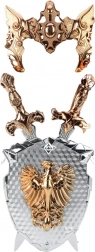 Dziecięcy zestaw rycerski został zaprojektowany z wyjątkową dbałością o detale. Bogato zdobione rękojeści, lśniące powierzchnie i strukturalne wzory pozwalają dzieciom przenieść się do czasów rycerskich pojedynków. To zabawka, która nie tylko cieszy oko, ale także pobudza wyobraźnię do tworzenia własnych opowieści.