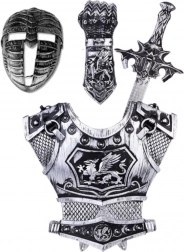 Zbroja została zaprojektowana z dbałością o detale, z typowymi grawerunkami nadającymi realistyczny wygląd. Uniwersalny rozmiar sprawia, że zestaw pasuje większości dzieci w wieku przedszkolnym i wczesnoszkolnym. Zestaw zapakowany jest w atrakcyjne opakowanie prezentowe, idealne na podarunek.