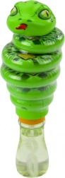 Ta zabawka w kształcie zielonego węża zawiera pojemnik z płynem do baniek oraz efektowną, obracającą się głowę i ciało węża, które przyciągają uwagę i wprowadzają elementy interaktywności. Dzięki temu dodatkowemu efektowi, zabawa staje się jeszcze bardziej atrakcyjna i dynamiczna - idealna dla dzieci, które lubią ruch i kolorowe efekty.