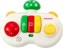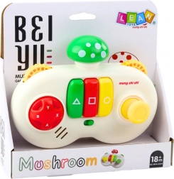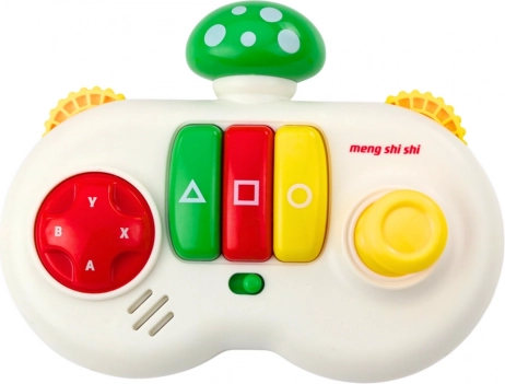 Ta kolorowa interaktywna zabawka została zaprojektowana w formie pada z górną częścią w kształcie grzybka w kolorze czerwonym, zielonym lub żółtym, co przyciąga uwagę dzieci. Konsola jest wyposażona w kolorowe przyciski, efekty dźwiękowe, obrotowe kółka z wypukłą fakturą oraz trzy centralne przyciski w kształcie trójkąta, kwadratu i koła.