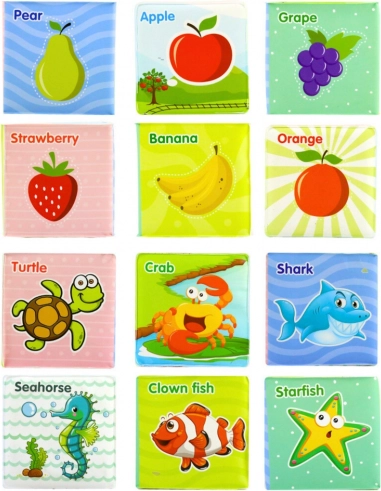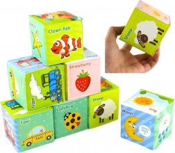 Klocki zawierają różne obrazki – literki, cyfry lub słowa po angielsku, co wspiera rozwój językowy i poznawczy dziecka. Każdy klocek został zaprojektowany tak, aby stymulować zmysły i rozwój małej motoryki, dzięki czemu dzieci mogą klocki układać, ściskać, rzucać i obserwować różne wzory oraz kolory.