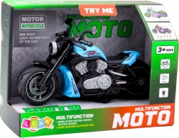 Zabawka zawiera wbudowane efekty świetlne i dźwiękowe, które aktywują się po naciśnięciu przycisku umieszczonego w łatwo dostępnym miejscu. Dzieci usłyszą odgłosy silnika i zobaczą migające światła z przodu motocykla. Te interaktywne elementy przyciągają uwagę, stymulują zmysły dziecka i urozmaicają codzienną zabawę.