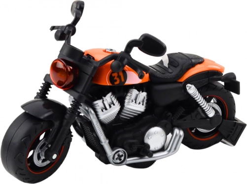 Dzięki intensywnej pomarańczowej barwie motocykl wyróżnia się na tle innych zabawek i zyskuje nowoczesny charakter. Wykonany z trwałego plastiku, jest bezpieczny dla dzieci, a jego lekkie elementy ułatwiają montaż. Zestaw zawiera baterie AG13 do natychmiastowej zabawy.
