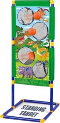 Sercem zestawu jest kolorowy, stojący cel o wysokości 93 cm z trzema punktowanymi otworami umieszczonymi na różnych wysokościach. Dzięki zróżnicowanej wielkości i położeniu otworów można trenować celność na różnych poziomach trudności. Cel wykonano z lekkich, lecz wytrzymałych materiałów; można go łatwo złożyć i przechowywać. Gra nadaje się zarówno dla jednego gracza, jak i do zabawy w parach. Dzieci mogą ćwiczyć ruch, rywalizację i spostrzegawczość, co świetnie motywuje do kolejnych prób.