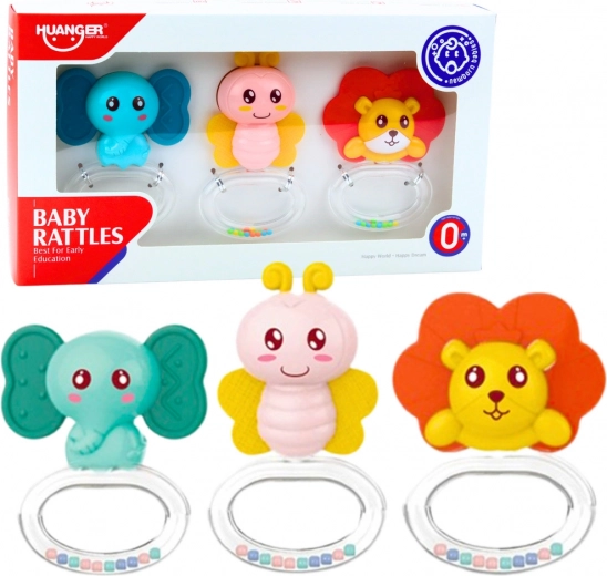 Zestaw grzechotek i gryzaków dla niemowląt Zwierzątka 3 szt.