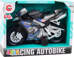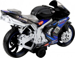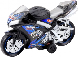 Czarno-niebieski motocykl wykonany jest z odpornego plastiku, który jest zabezpieczony przed uszkodzeniami, i wyposażony w mocne koła do bezpiecznej jazdy po różnych powierzchniach. Po naciśnięciu przycisku aktywują się efekty dźwiękowe i świetlne – realistyczne dźwięki silnika i świetlne show zapewniają niezapomniane wrażenia.