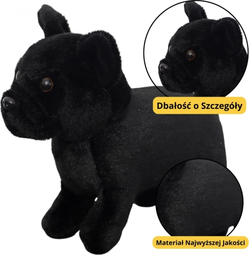 Czarny pluszowy piesek wyróżnia się swoim uroczym wyrazem twarzy, stojącymi uszami i stabilną konstrukcją, co czyni go realistycznym i czarującym. Dzięki kompaktowym rozmiarom łatwo mieści się w dziecięcych dłoniach, co umożliwia łatwe noszenie, tulenie lub umieszczenie w łóżeczku. Jest świetnym towarzyszem podczas snu, codziennych zabaw czy jako element dekoracyjny w dziecięcym pokoju.
