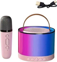 Mikrofon jest całkowicie bezprzewodowy, co pozwala na swobodę ruchu podczas śpiewu i dodawania efektów dźwiękowych. Dzięki kompaktowym wymiarom i praktycznemu uchwytowi ten zestaw karaoke jest nie tylko stylowy, ale też w pełni mobilny.