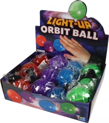 Kolorowa piłka skacząca, która po uderzeniu o ziemię świeci kolorowymi światłami. Dzięki gumce, którą można przymocować do nadgarstka, zabawa jest maksymalnie wygodna.