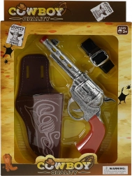 Zostań bohaterem Dzikiego Zachodu z tym poręcznym zestawem dla małych kowbojów! Zawiera pistolet z efektami dźwiękowymi, kaburę i pasek do przypięcia.