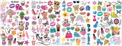 Spraw radość dzieciom dzięki temu zestawowi dziecięcych tatuaży, który zawiera ponad 70 różnych tatuaży na dwóch arkuszach o wymiarach 20x13 cm.