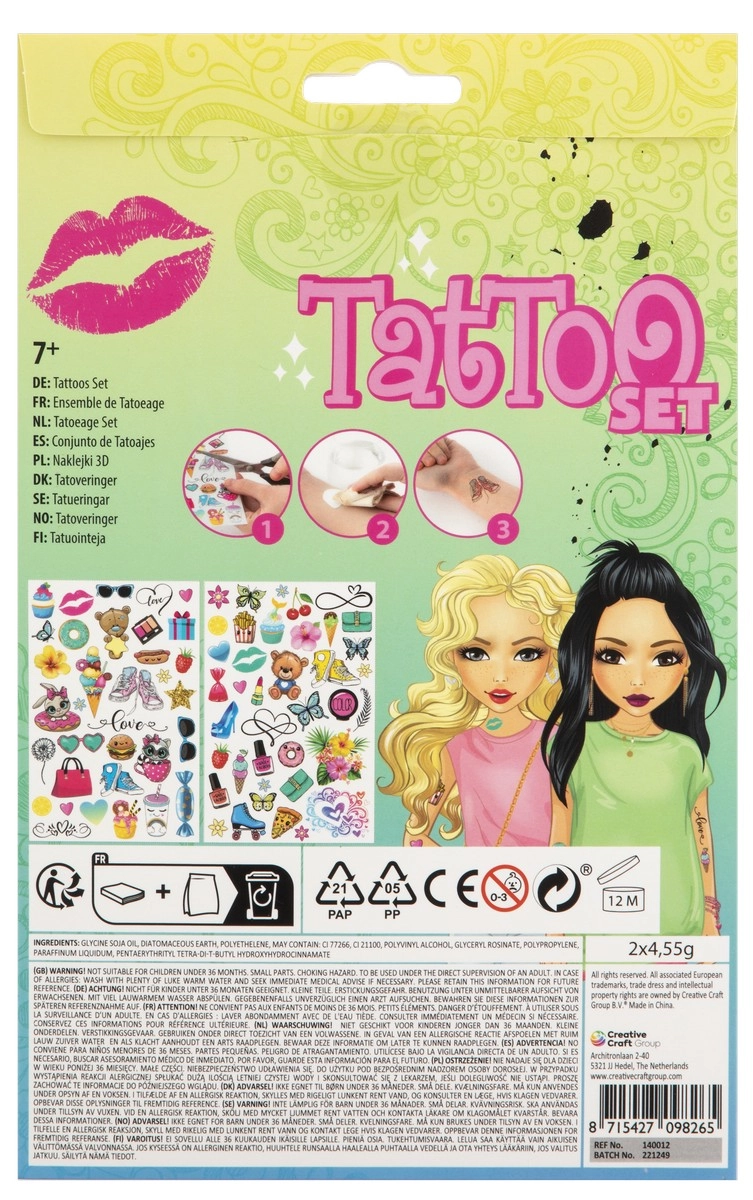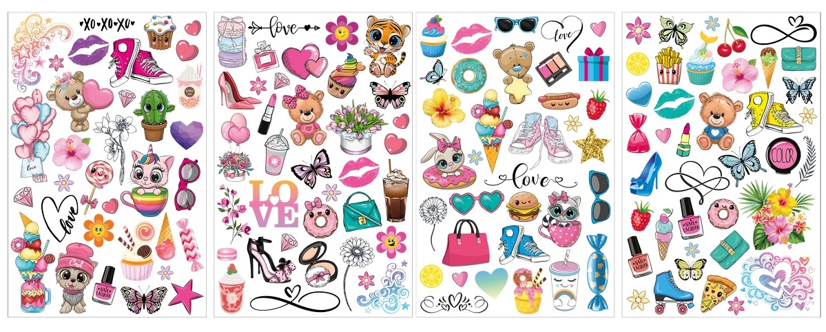 Wyraź kreatywność swoich dzieci dzięki temu pięknemu zestawowi tatuaży. Każdy arkusz zawiera bogatą gamę różnych motywów, które dzieci pokochają.