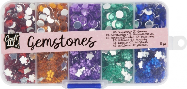Odkryj piękny zestaw kolorowych kamieni szlachetnych w praktycznym organizerze. Ten zestaw zawiera 10 różnych dekoracyjnych kamyków w 5 kolorach i 2 kształtach.