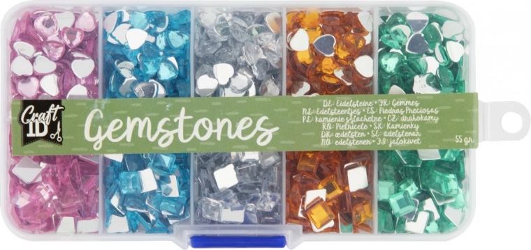 Zestaw kolorowych klejnotów oferuje piękne kamienie w 5 kolorach i 2 kształtach, wszystko zapakowane w praktyczny plastikowy organizer.