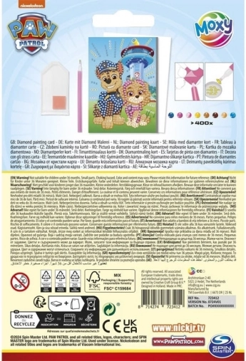 Stwórz własny, lśniący obrazek z ulubionymi bohaterami z PAW PATROL. Ten zestaw jest idealny dla dzieci i początkujących – większe diamenty łatwo się chwytają i precyzyjnie umieszcza na zadrukowanym podkładzie. Gotowe dzieło możesz podarować lub schować do dołączonej koperty.