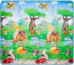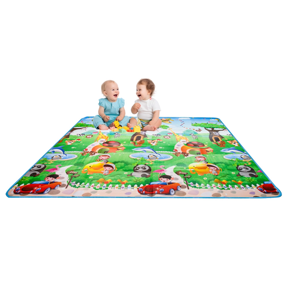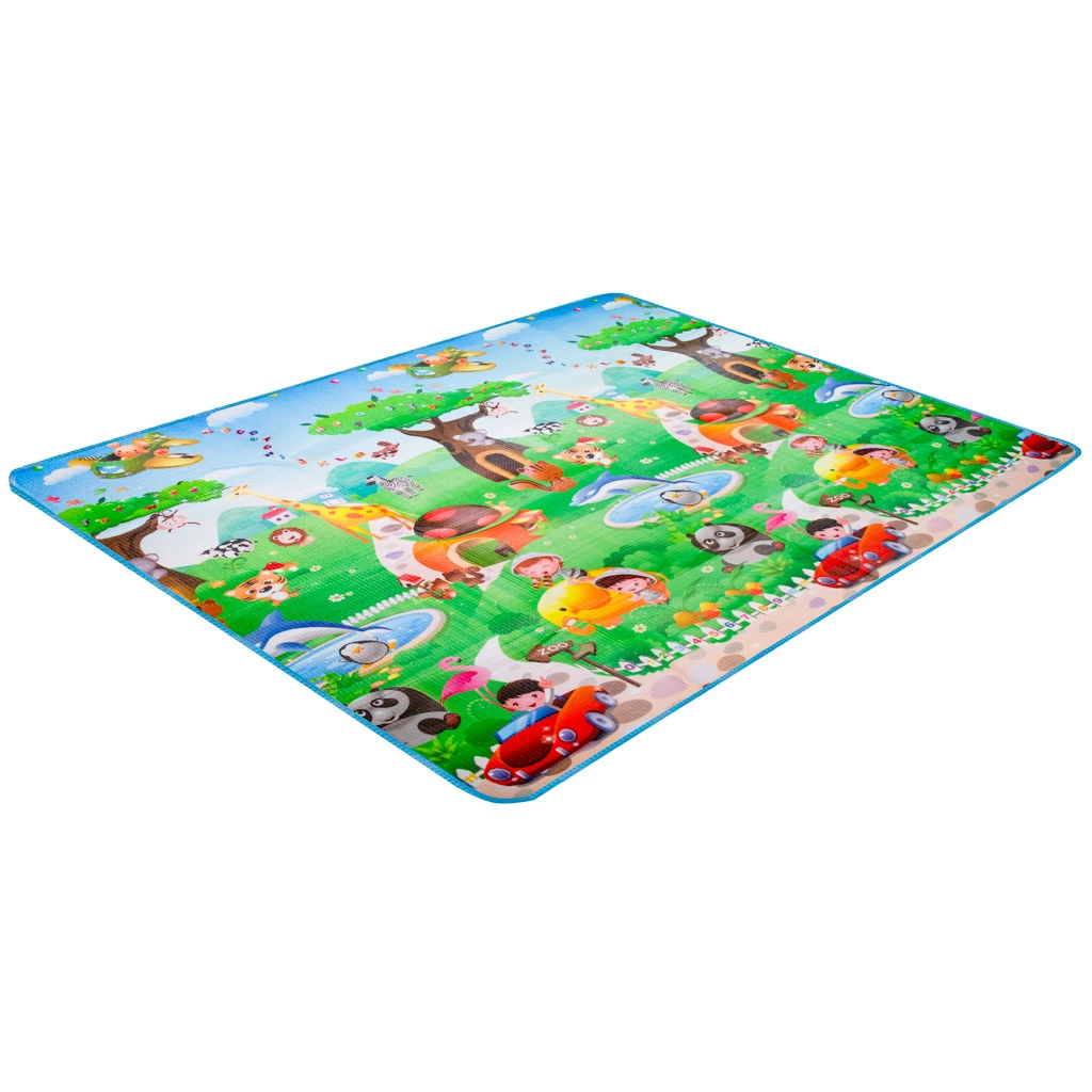 Ta składana mata z wytrzymałej pianki EPE jest idealna jako dywan do pokoju dziecięcego i kącika zabaw. Dzięki dwustronnemu nadrukowi łączy zabawę i naukę – dzieci podczas zabawy utrwalają litery, liczby i zwierzątka.