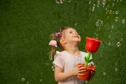 Ta maszynka do baniek w kształcie czerwonej róży w doniczce zachwyci wszystkie dzieci, które kochają ruch i zabawę na świeżym powietrzu. Wystarczy wlać roztwór, włączyć i obserwować, jak wokół unosi się mnóstwo połyskujących baniek. Podświetlenie LED nadaje bańkom wyjątkowy wygląd, zwłaszcza o zmierzchu i wieczorem.