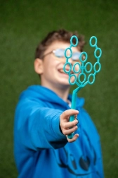 • Zestaw zawiera drzewko jako narzędzie, talerzyk na roztwór oraz butelkę z płynem o pojemności 400 ml do tworzenia dużych baniek.