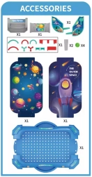 Model w wersji DIY – dziecko samodzielnie składa planszę, co rozwija małą motorykę i samodzielność. Dwie konfiguracje przeszkód zapewniają świeże wyzwania przy każdej rozgrywce, niezależnie od tego, czy grasz sam, czy organizujesz miniturniej z kolegami.