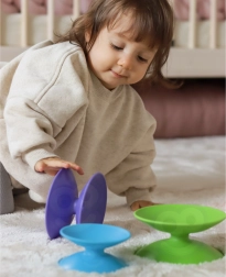 Układanie i spuszczanie krążków po spirali wspiera chwyt, precyzję ruchów oraz koordynację ręka–oko u dzieci już od 10 miesięcy.