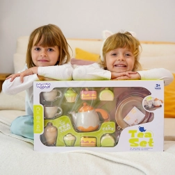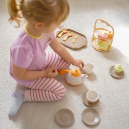 Z tym uroczym zestawem do herbaty WOOPIE dzieci łatwo zanurzą się w świat naśladowania dorosłych – będą organizować własne herbatki, zapraszać rodzinę i przyjaciół oraz uczyć się dzielenia się i uprzejmości. Bogate wyposażenie z czajniczkiem, filiżankami ze spodeczkami, łyżeczkami i deserami wspiera kreatywną zabawę i pobudza dziecięcą wyobraźnię.