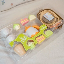Lekkie, dopasowane do dzieci elementy z zaokrąglonymi krawędziami dobrze leżą w małych rączkach i stymulują motorykę małą. Zestaw w pastelowych kolorach jest idealny do codziennej zabawy i nauki poprzez rolę gospodarza oraz obsługującego.