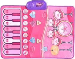 Odkryj radość z muzyki z dziecięcą matą muzyczną WOOPIE 2w1. Duża, miękka powierzchnia łączy klawisze pianina i strefę perkusji, dzięki czemu dzieci mogą grać dłońmi, stopami lub dołączonymi pałeczkami. Dzięki funkcji nagrywania łatwo zachowają swoje pierwsze melodie, a regulowana głośność zapewnia komfortową zabawę w domu i poza nim.