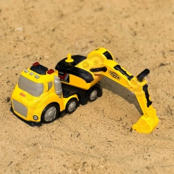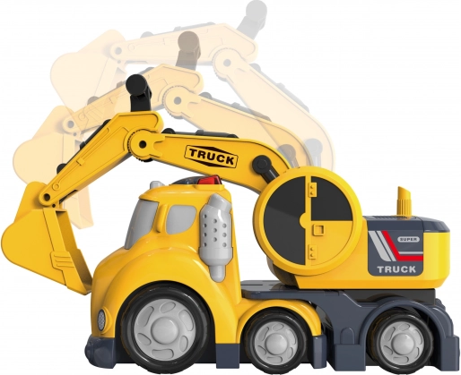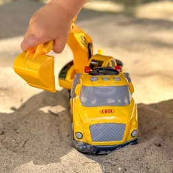 Ramię z łyżką można podnosić i opuszczać, by łatwo nabierać i wysypywać piasek lub drobne zabawki. Idealna do zabawy na placu budowy.